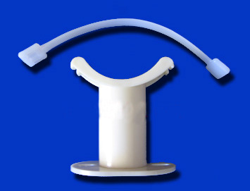 ABS可調管支架由ABS固定底座、ABS螺紋升降管、尼龍扎帶三部分組成。下部通過膨脹螺栓將可調管支架固定于曝氣池底,上部通過尼龍扎帶固定曝氣管,高度可以通過ABS螺紋升降管自由調節。