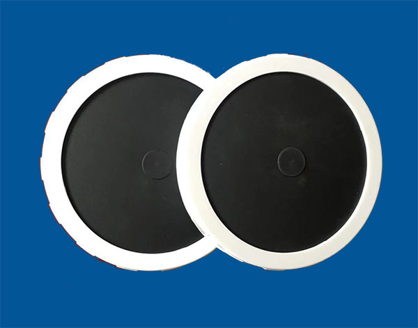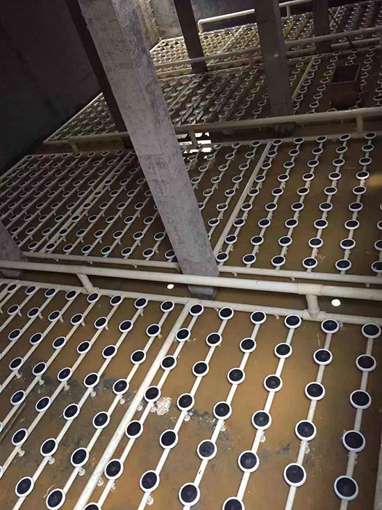 平板系列曝氣器由底盤、布?xì)獗P、合成橡膠膜片、壓固圓環(huán)、空氣導(dǎo)流環(huán)、連接底座與配氣管連接的連接件組成。底座由ABS塑料制成,底座與壓固圓環(huán)上均有螺紋,橡膠膜片覆蓋在空氣均流板上,在固定圈的作用下能保證在膜片(周圍不漏氣,橡腋膜片在有均勻分布的孔眼,該種橡膠膜片采用多道特殊工藝加藥而成,其性能穩(wěn)定,耐中濃度酰、堿、油等介質(zhì),是比較早投入到工程運(yùn)行中的曝氣器。平板型微孔曝氣器的支撐盤體直徑Φ215,250、300m,平板型微孔曝氣器具備獨(dú)特的止回功能,有效防止停止運(yùn)行時(shí),污水逆流進(jìn)入布?xì)夤艿馈T撐⒖灼貧馄鳎胁灏暹B接方式和螺紋連接方式,可以靈活應(yīng)用于多種工藝的污水處理系統(tǒng)中,是一種成熟高效的曝氣設(shè)備。